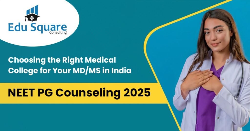 The journey to becoming a specialist doctor begins with a crucial decision and that decision is about choosing the right medical college for your MD/MS in India. With NEET PG Counseling 2025 around the edge, lakhs of medical graduates are gearing up for this high-stakes admission process. Your future career path, clinical exposure, and academic environment all depend on this one important choice. That’s where expert guidance from Edu Square Consulting can make all the difference.